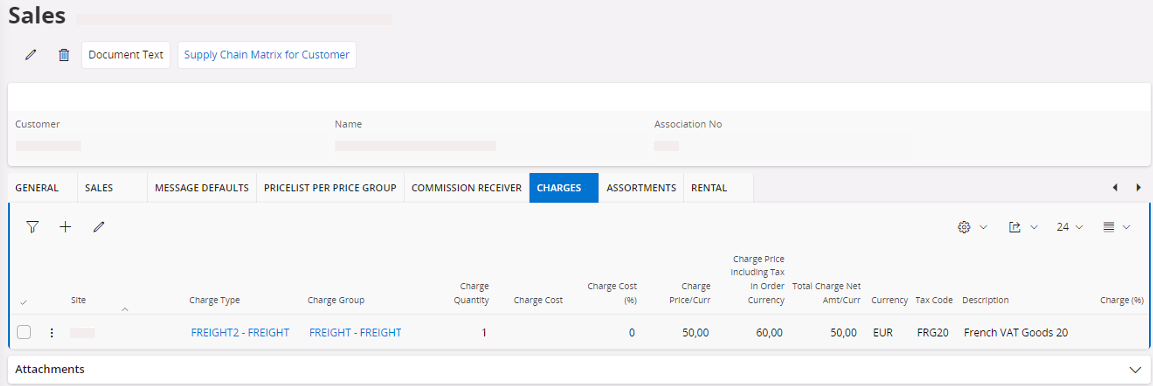 Note:The types of charges must be first configured in a separate list. The amount can be adjusted at the customer level.