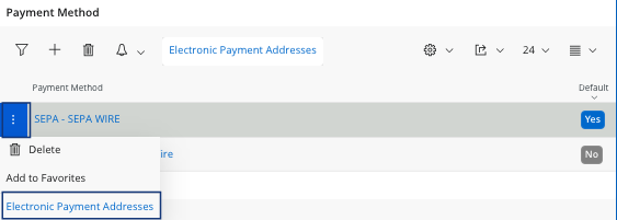 on a payment method line and click Electronic Payment