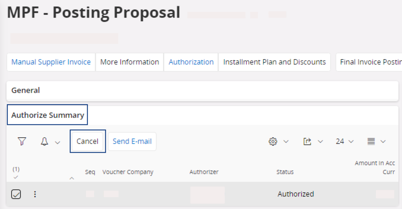 If your invoice status is Authorized, your invoice has been authorized automatically and you cannot modify your lines.To modify your lines: in the area Authorize Summary, click Cancel. It removes your invoice authorization and you can modify your lines.