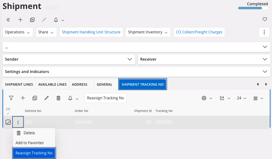 - Enter a new tracking number and click OK.