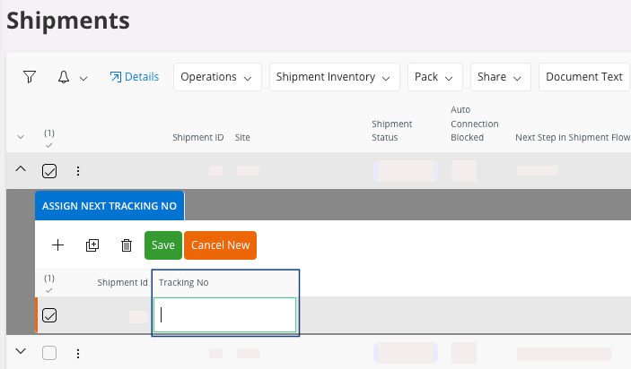 Adding a Tracking Number for a Shipment