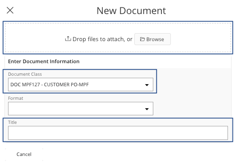 - For a customer order, choose the Document Class that corresponds to the document class 127 for your company. For example, for MPF it is: DOC MPF127.