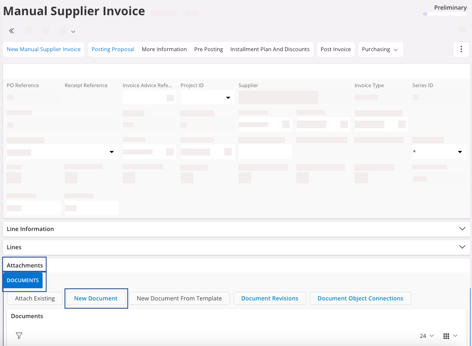 You need to add a document like the picture of the scanned invoice to complete the creation of the Manual Supplier Invoice.