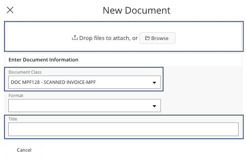 - For a scanned invoice, choose the Document Class that corresponds to the document class 128 for your company. For example, for MPF it is: DOC MPF128.