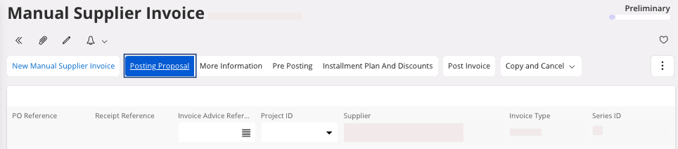 Invoice, in the header, click Posting