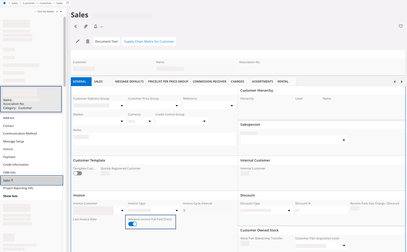 - Select your Customer on the left side of the screen, then click Show more and select Sales.