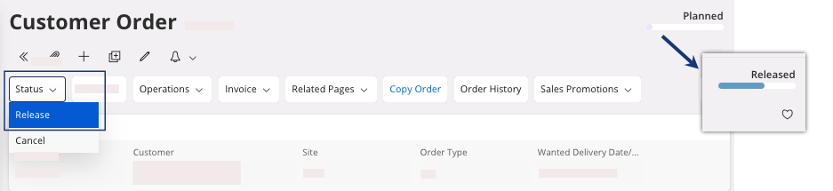 - Go to the Customer Order page.