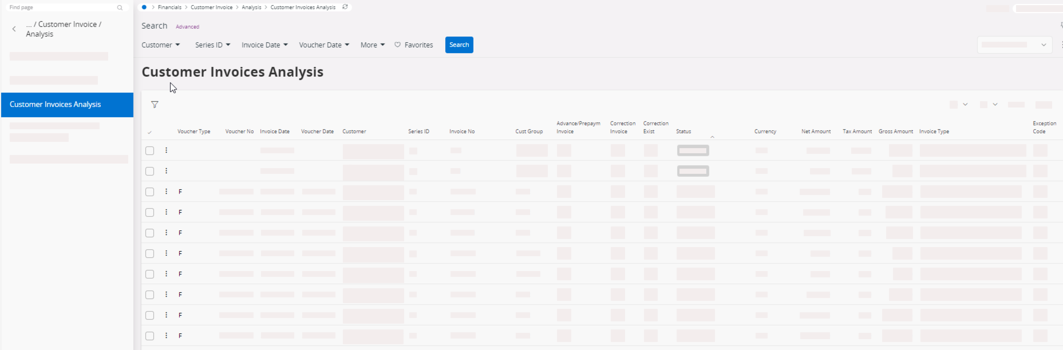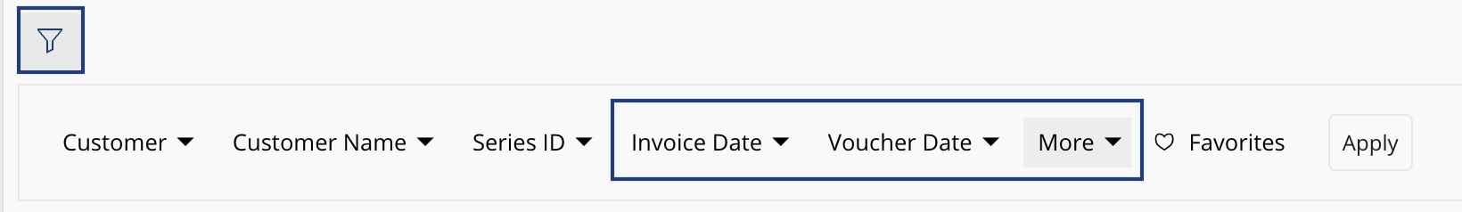 Use the filters to display the invoices by either Invoice Date or Voucher Date.