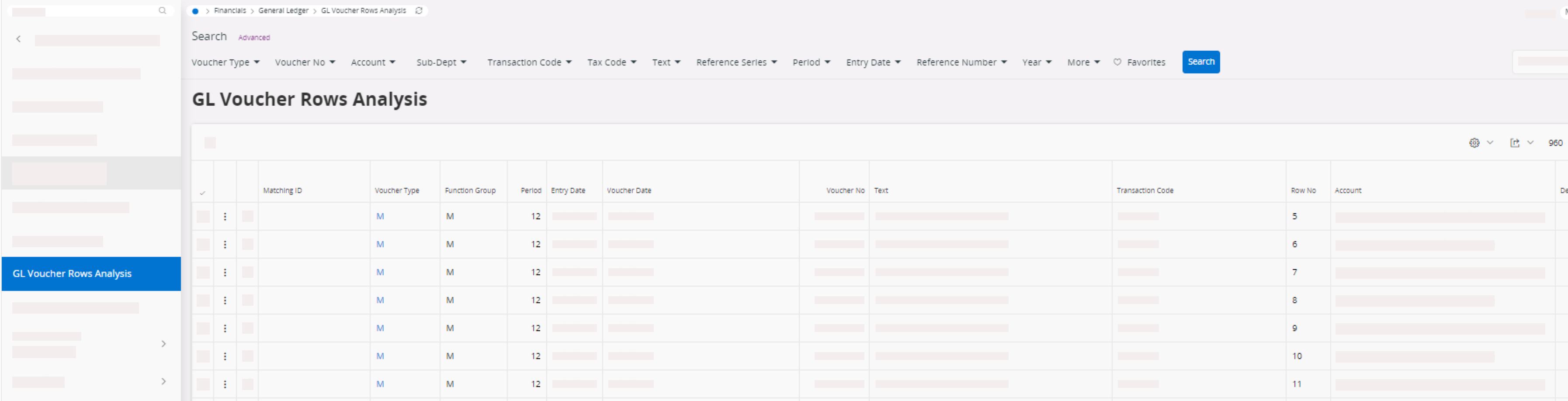 You can display the details of entries from your general ledger, in order to analyze and extract all general ledger transactions.
