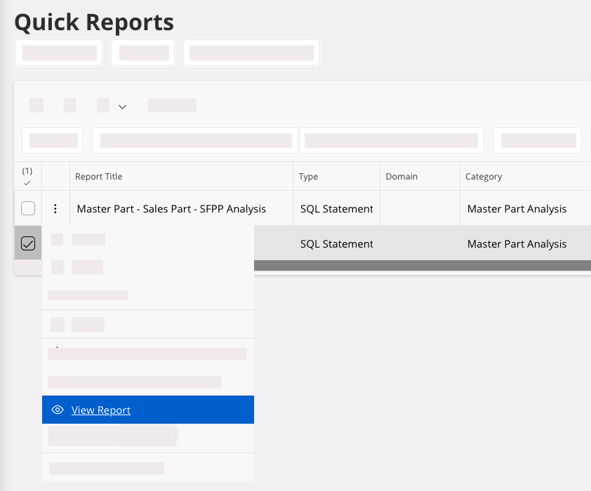 Two types of reports are listed:- Master Part – Sales Part – SFPP Analysis: sales and supplier details about the parts.