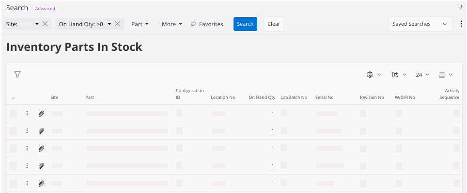 You can filter the page according to your Site and On Hand Qty