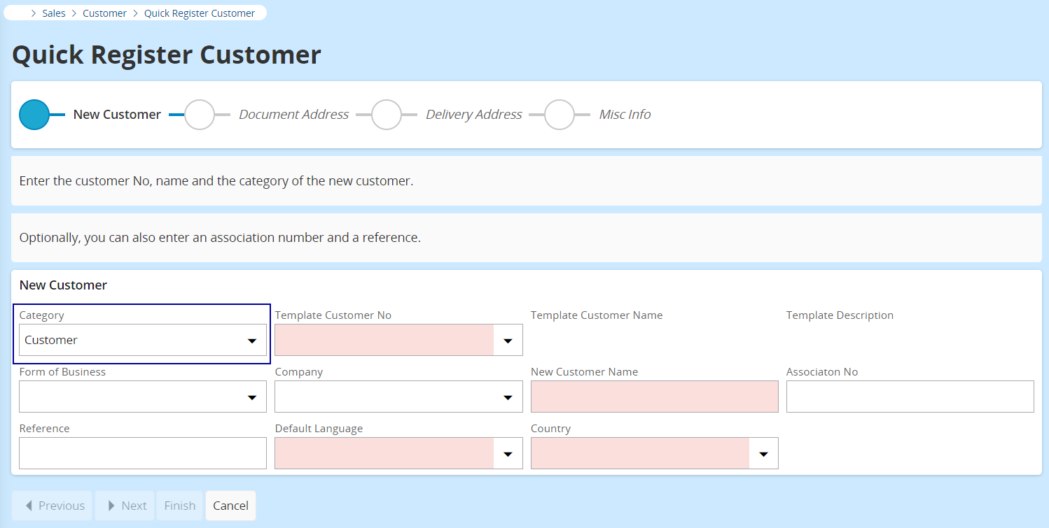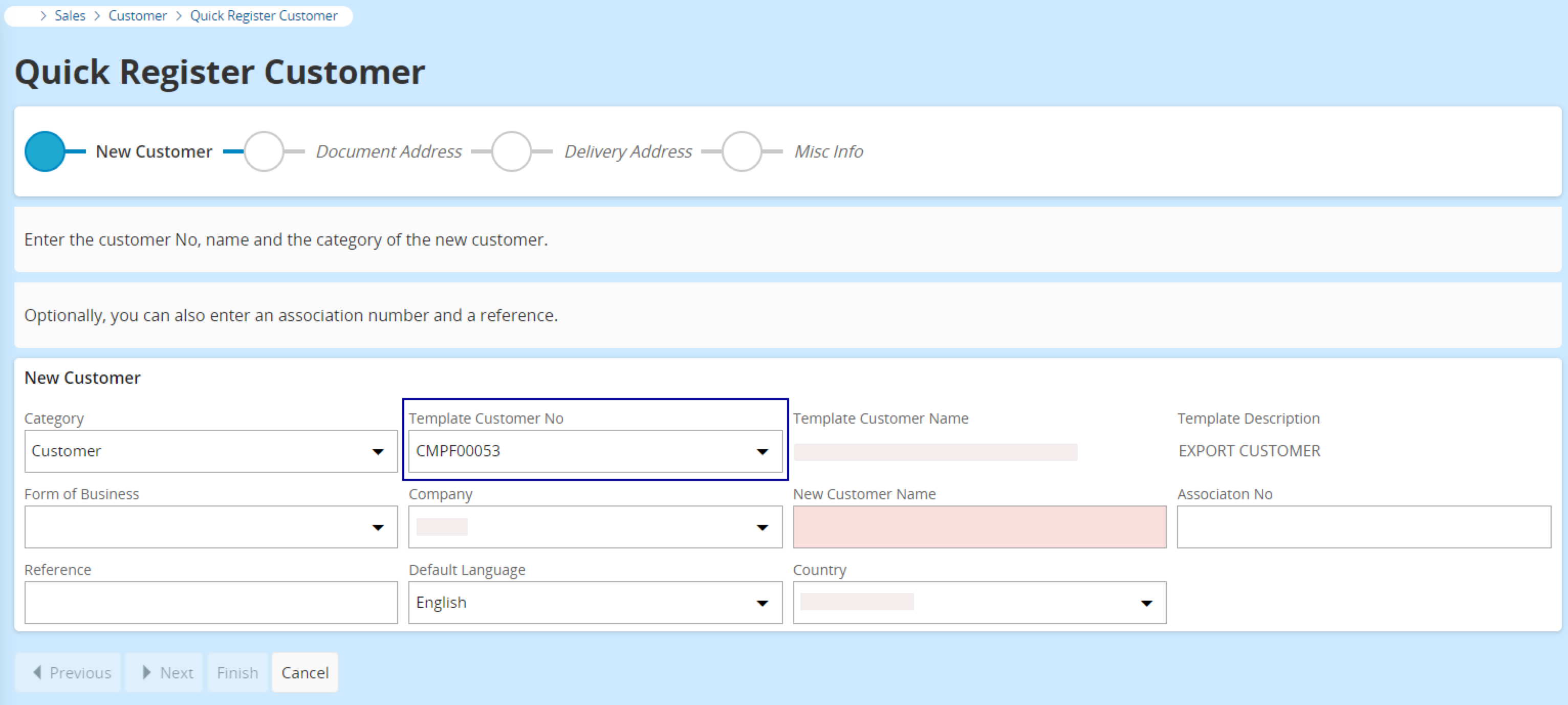 - The following fields are automatically populated, check that the details are correct: Cust Stat Grp, Currency, Salesperson, Payment Terms, Market, Customer Group.
