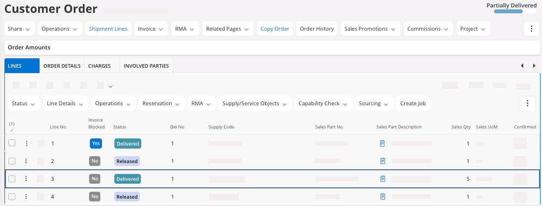 - Go to the page Customer Order and find your line.