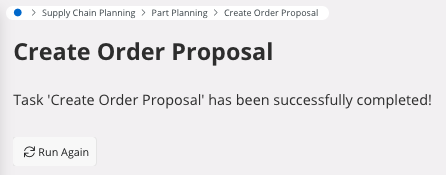 Once you have configured your parts, you can use the Create Order Proposal menu to help the customer to define when the parts need to be reordered.