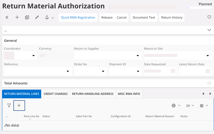 - Go to the page Return Material Authorization.