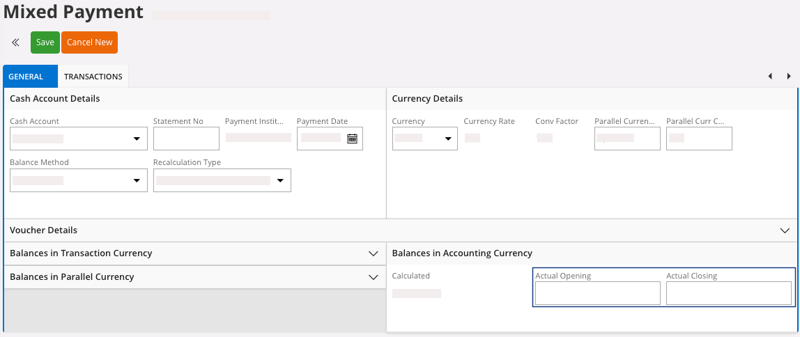statement. These fields will help you fill the transactions lines.