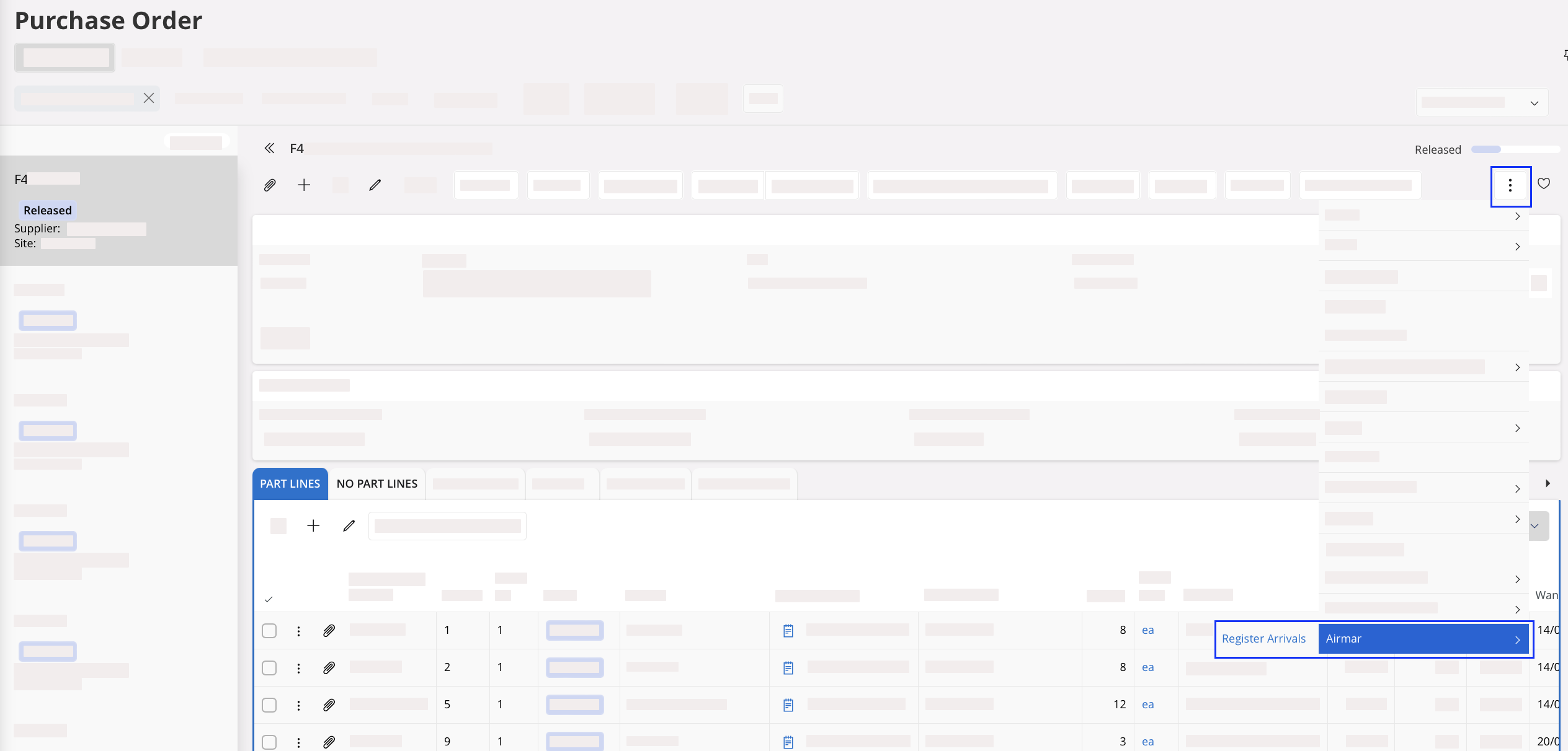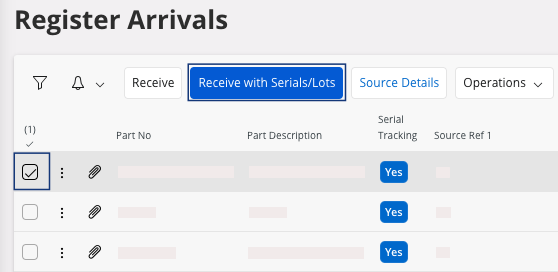Tip:To easily identify your line(s) as serialized part(s) or non serialized part(s), refer to the fields Part No and Description or refer to the field Serial Tracking.- If Serial Tracking field is Yes: your line contains serialized part(s).