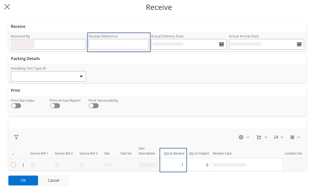 - Qty to Receive: enter the real quantity received.