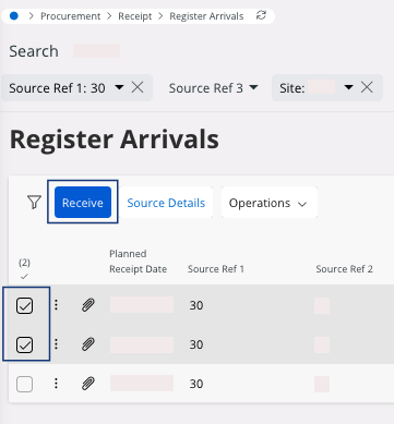 Select your line(s) and click Receive.