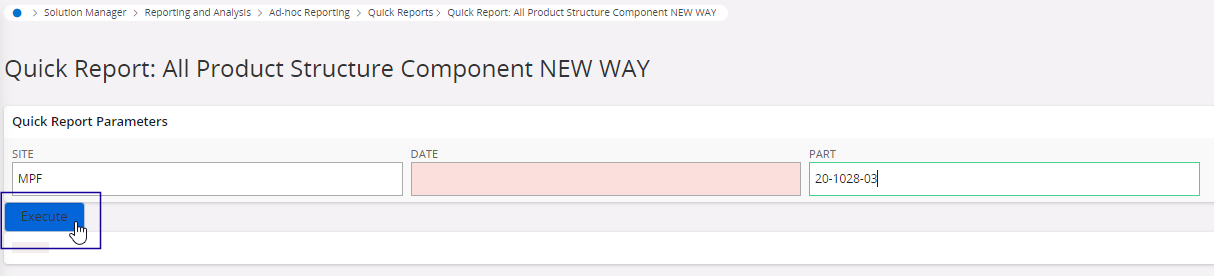 - Part: (optional) filter with the first characters of the part (for example NFS%) or put a specific part number.