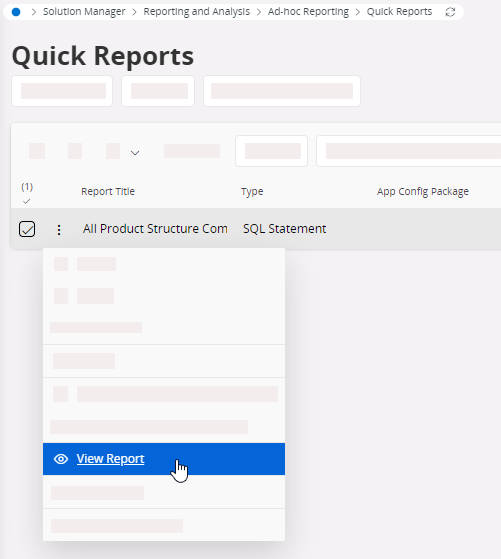 - Click the filter icon in the top toolbar, then select Report Title and enter All Product Structure Component NEW WAY.