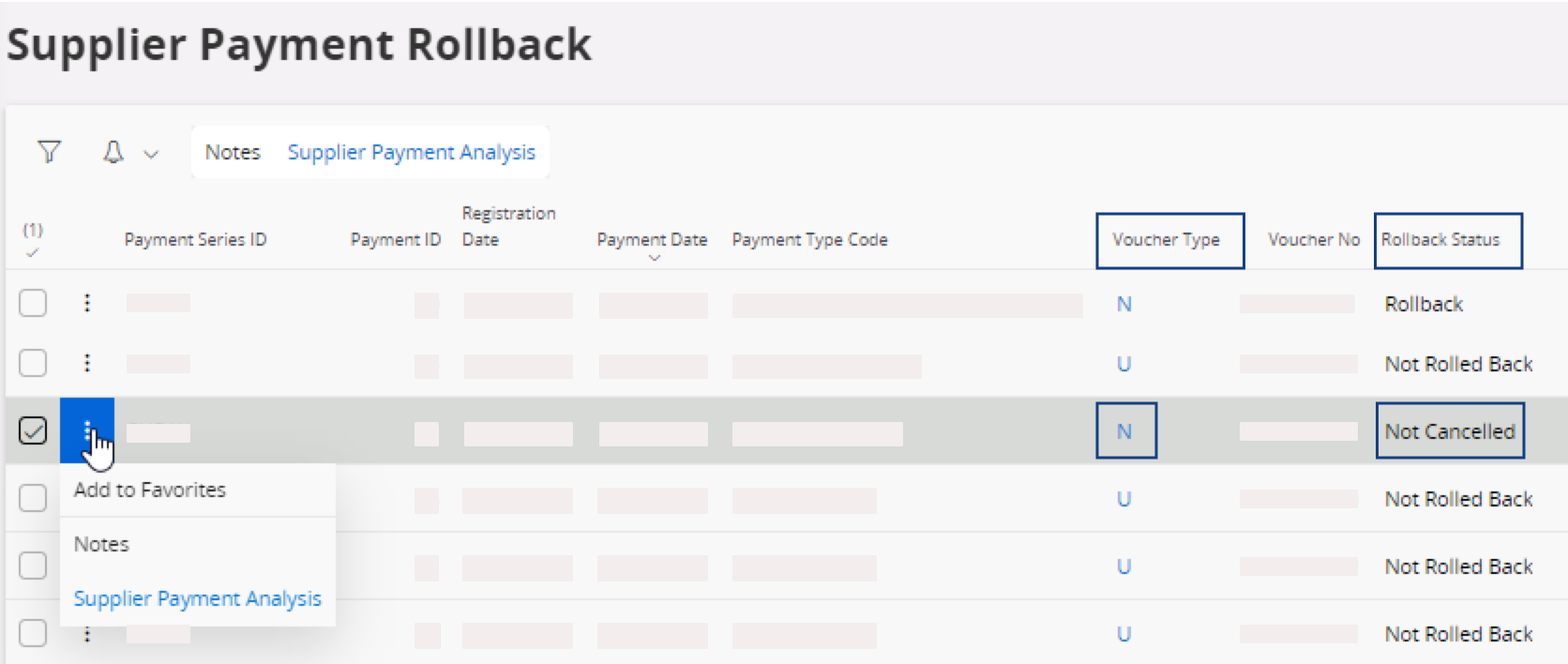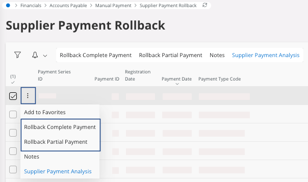 - Go to the Supplier Payment Rollback page.