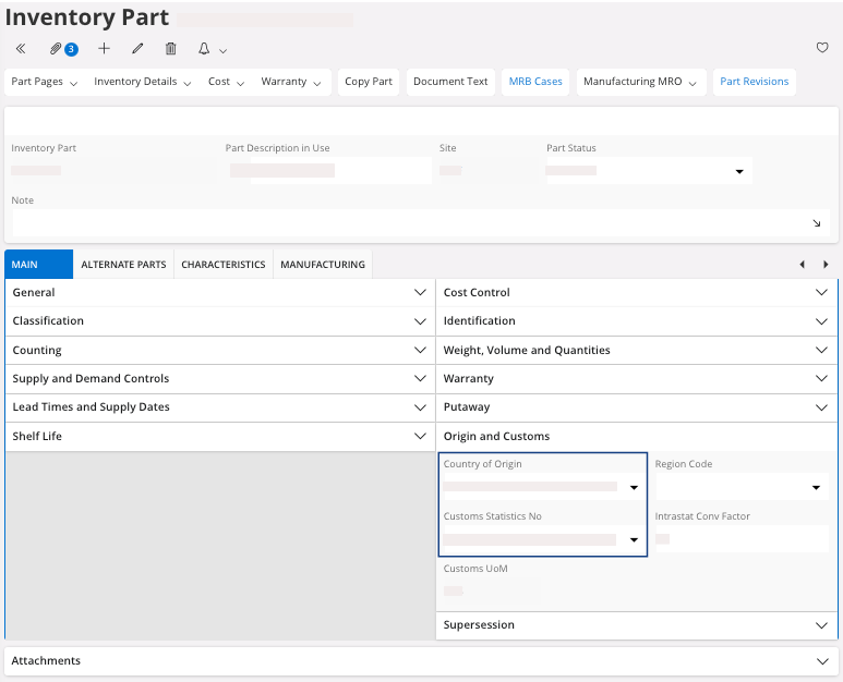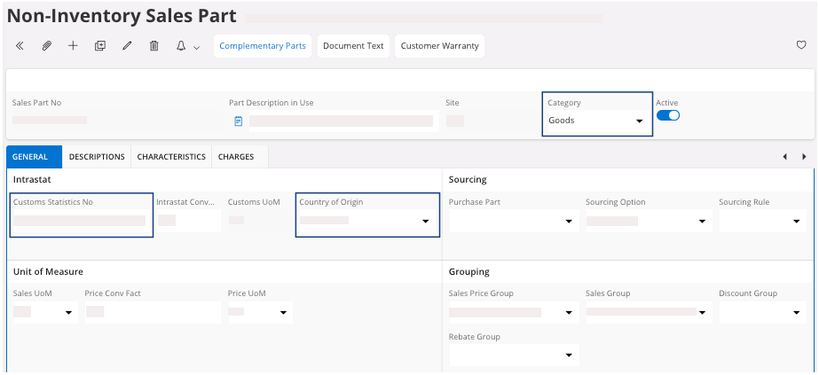 - Customs Statistics No: classify the item according to its customs statistics numbers. Each stock item has a number registered in IFS Cloud.