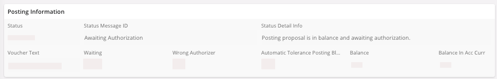 - In the area Posting Information, the Status Message ID is Posting proposal is fully authorized and ready for final posting.