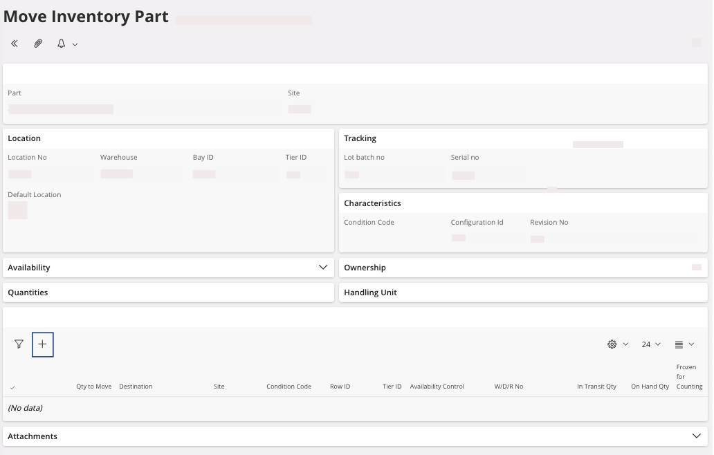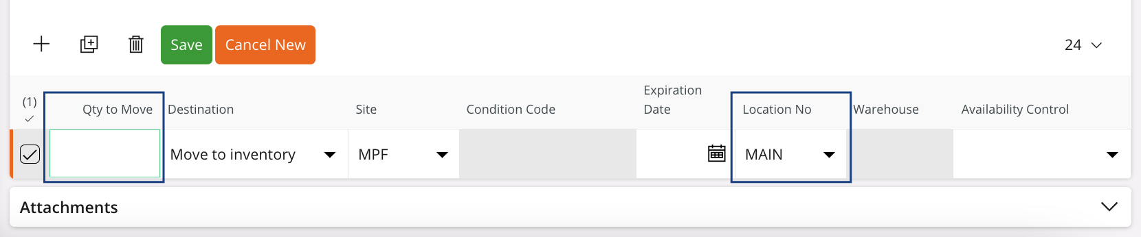 - Provide at least the value Qty to Move and Location No to set up the new location.