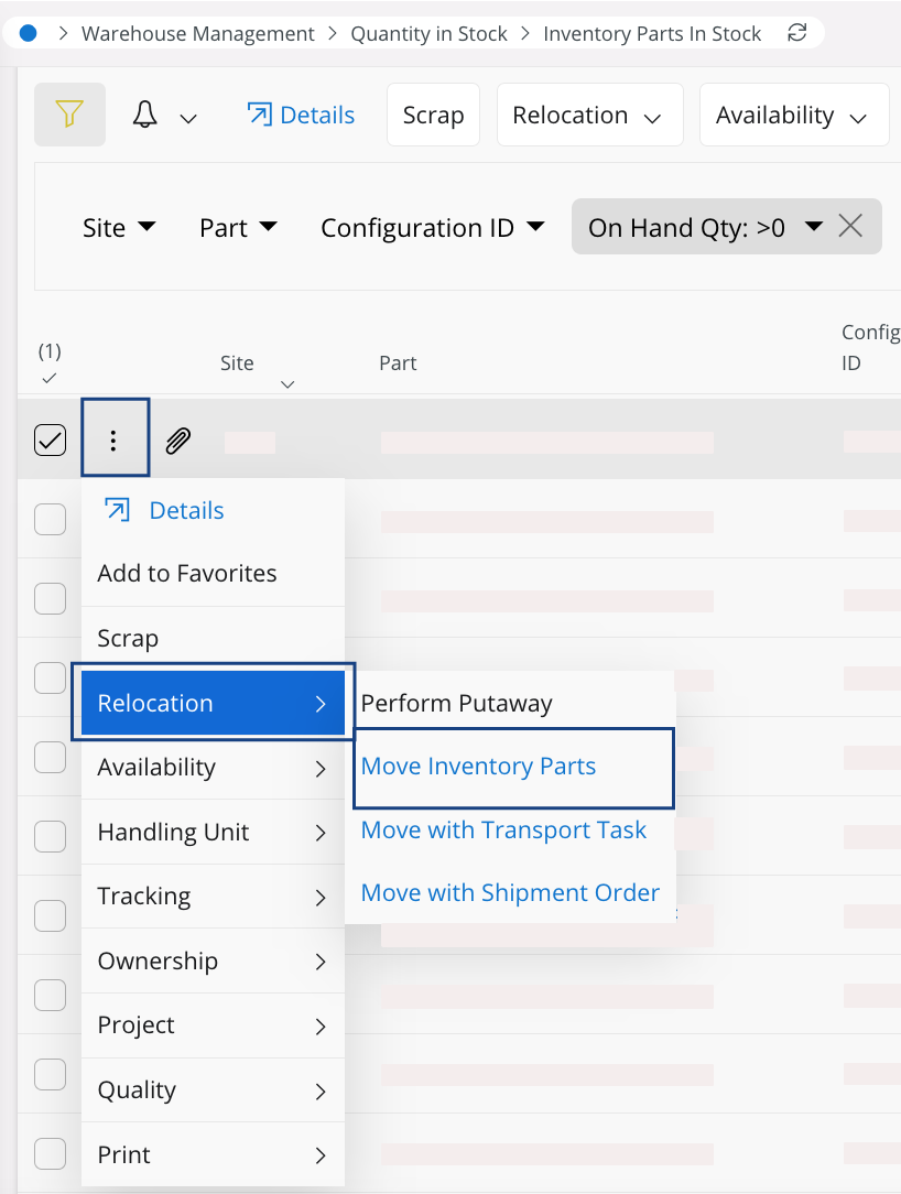 Note:The field Location No can be Filtered by your Site where the part is actually located, remove the filter to choose the new location.