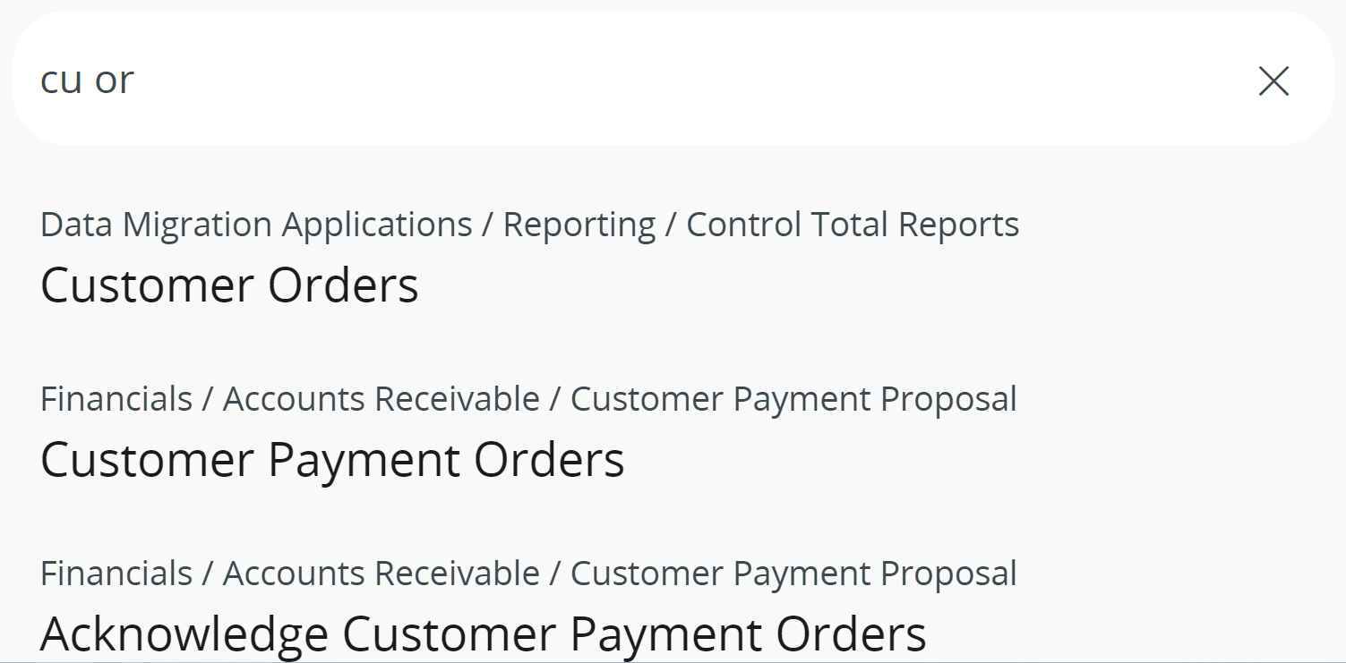 For example, here we are searching for the Customer Order page, but these methods also works for all your searches:
