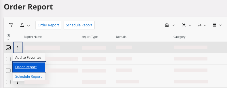 - Filter the lines according to the Report Name, Report Type, Domain and Category.