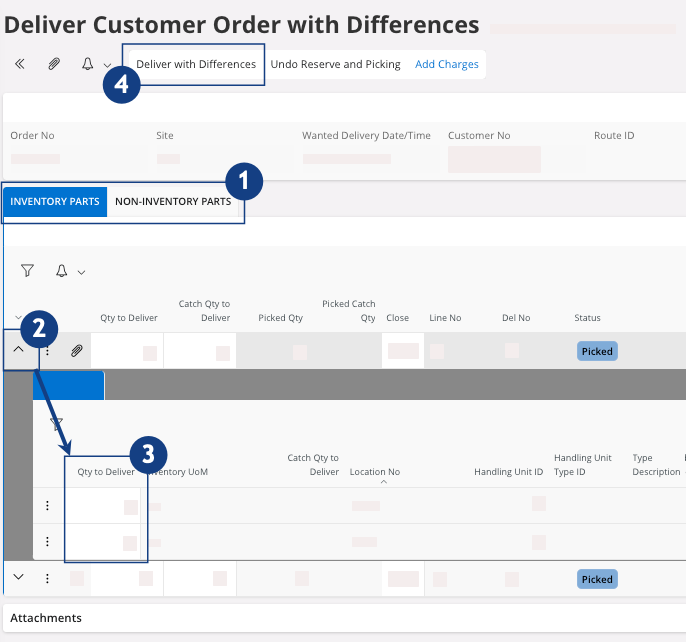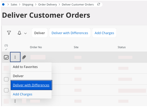A new page opens, Delivery Customer Order with Differences. -