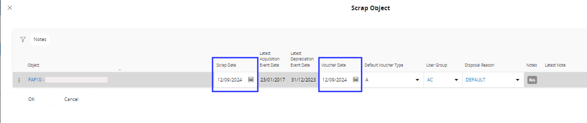enter the scrap date and confirm the voucher date. Click OK.