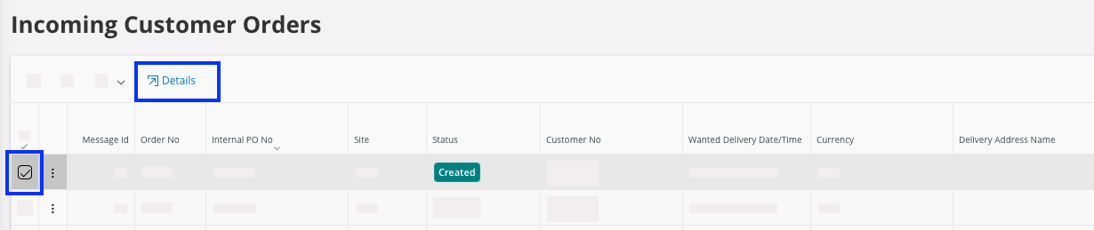 - To display the customer order that was automatically created by the intercompany purchaser, go to the page Incoming Customer Orders.