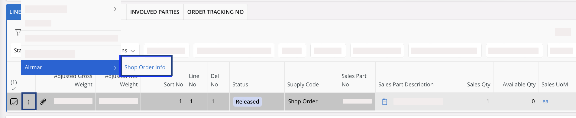 Going back to your initial Customer Order, the line linked to your shop order has a Reserved status.Remember:Click the Airmar button at the top of the page to access the next process pages directly.