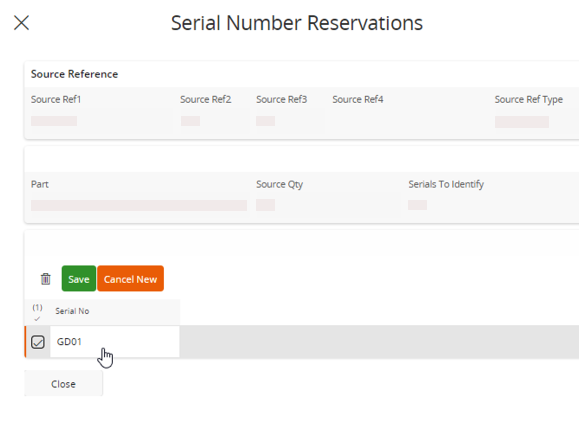 - Serials to reserve: you can find your Serial No and its Location for this new part manufactured.