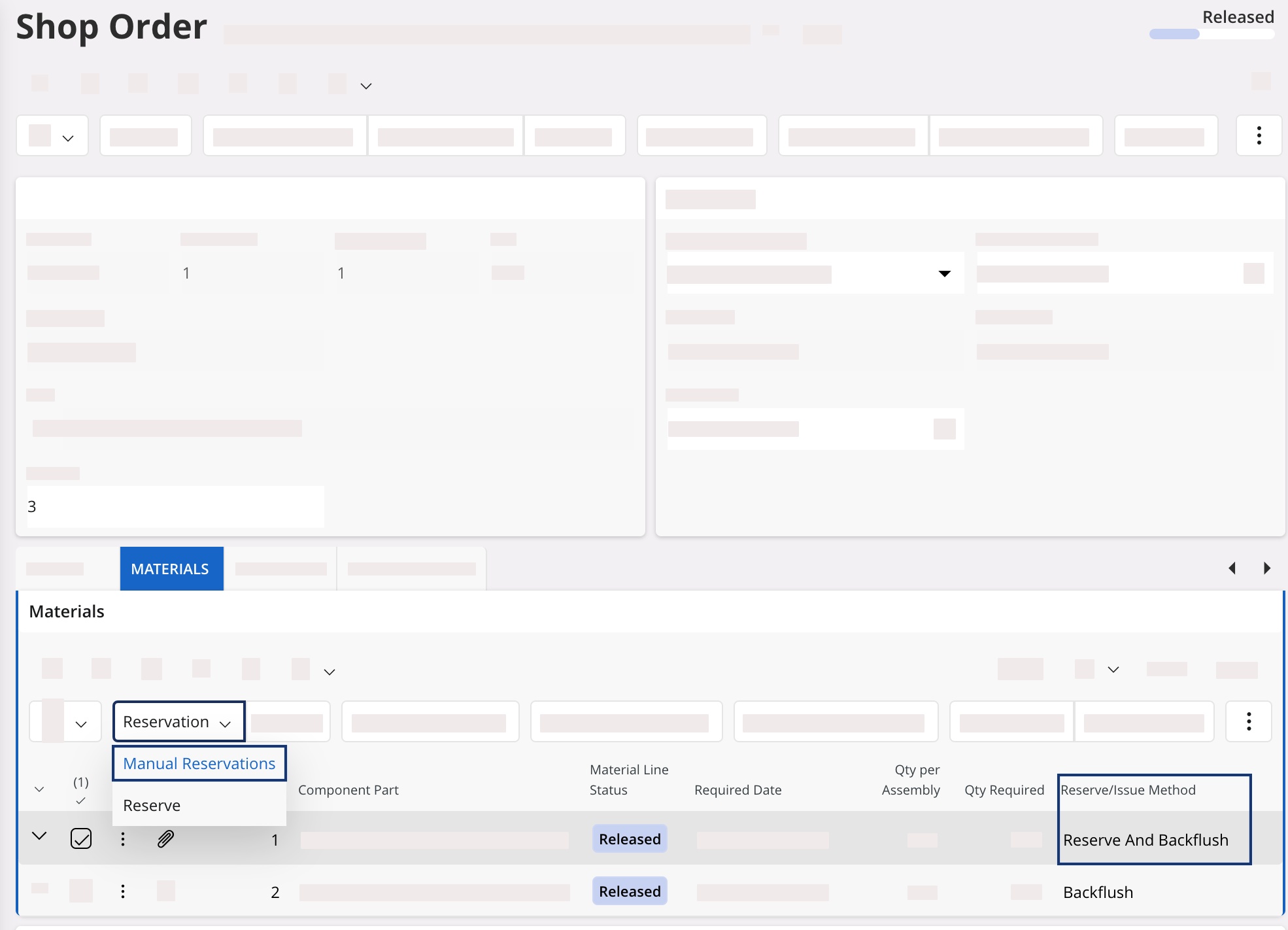 If you have parts that have a Shop Order supply code, you need to reserve them through a specific process.
