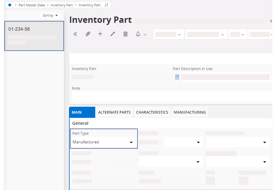 Go to the page Inventory Part