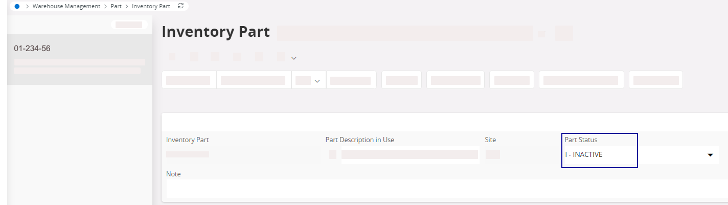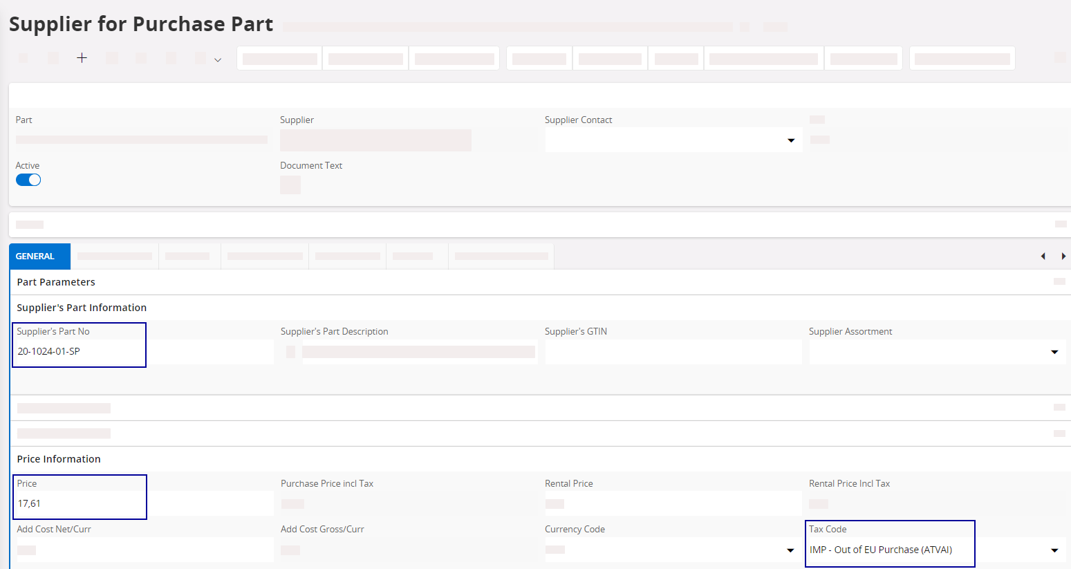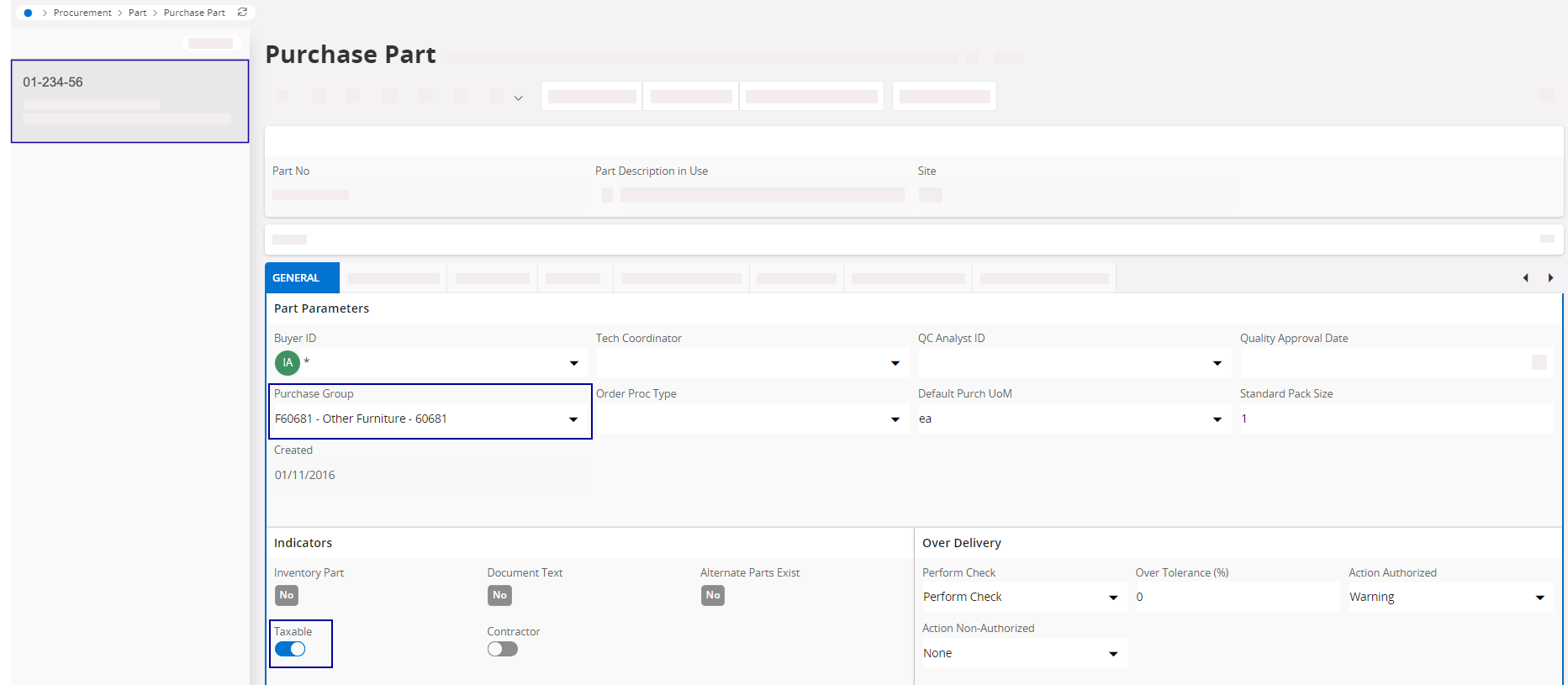 - Go to the Purchase Part page and select the part from the list on the left side.