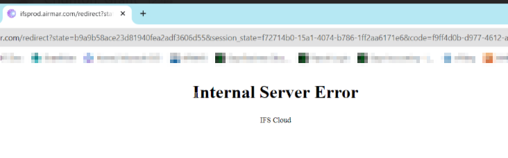 I am getting an "Internal Server Error" error message when trying to connect or while using IFS Cloud.